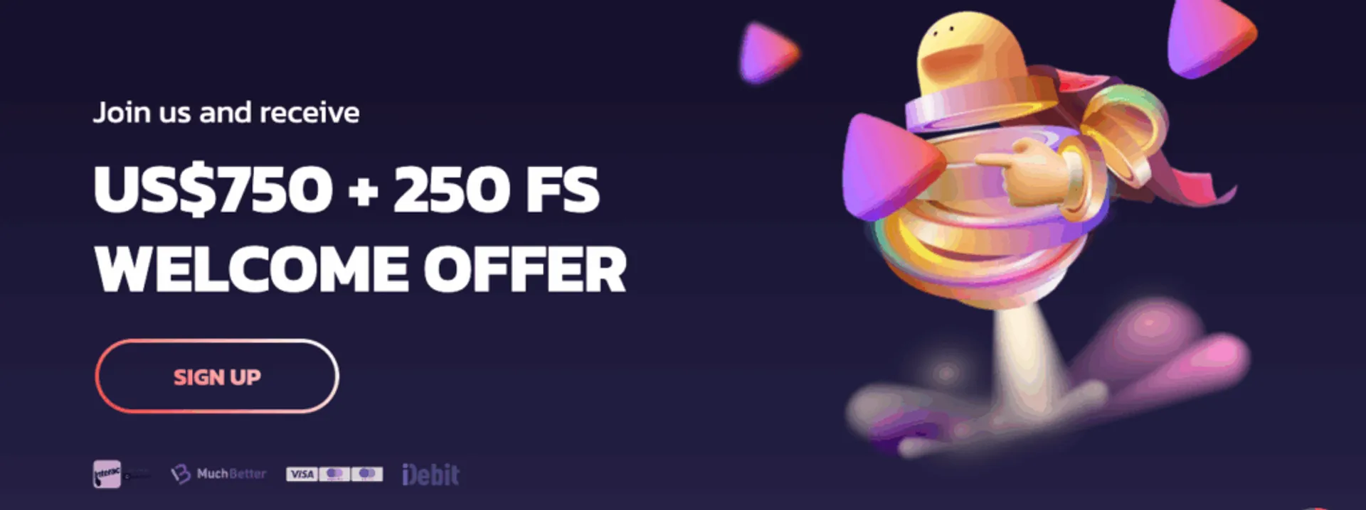 Gesamt: 75 % Match bis zu 750 USD + 250 Freispiele